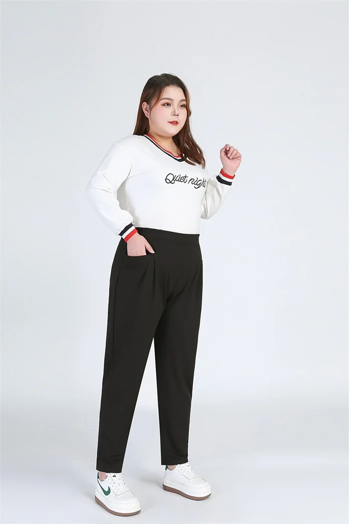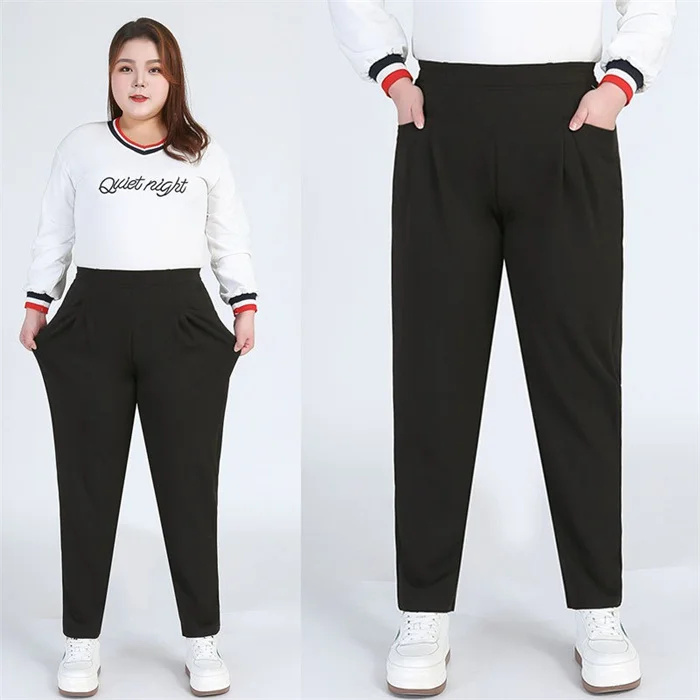 Black Plus Size Women Casual Pants 7XL 9XL Elastic Loose Ankle-Length 150KG Female Trousers High Waist Sweatpants Pencil Pants