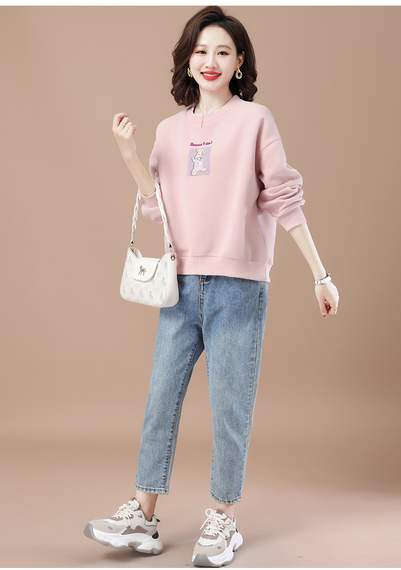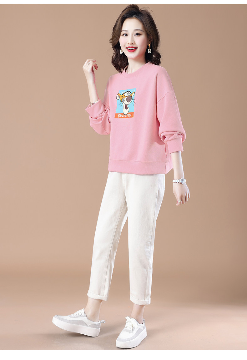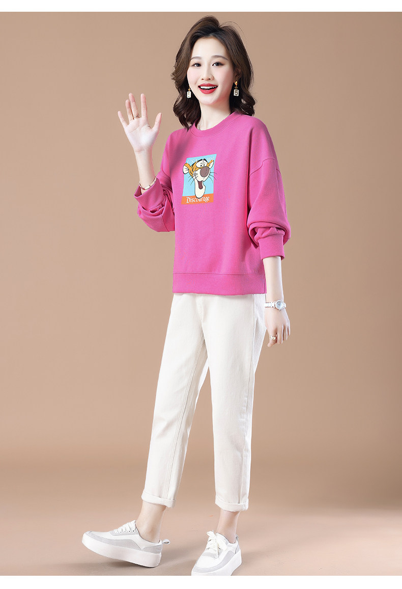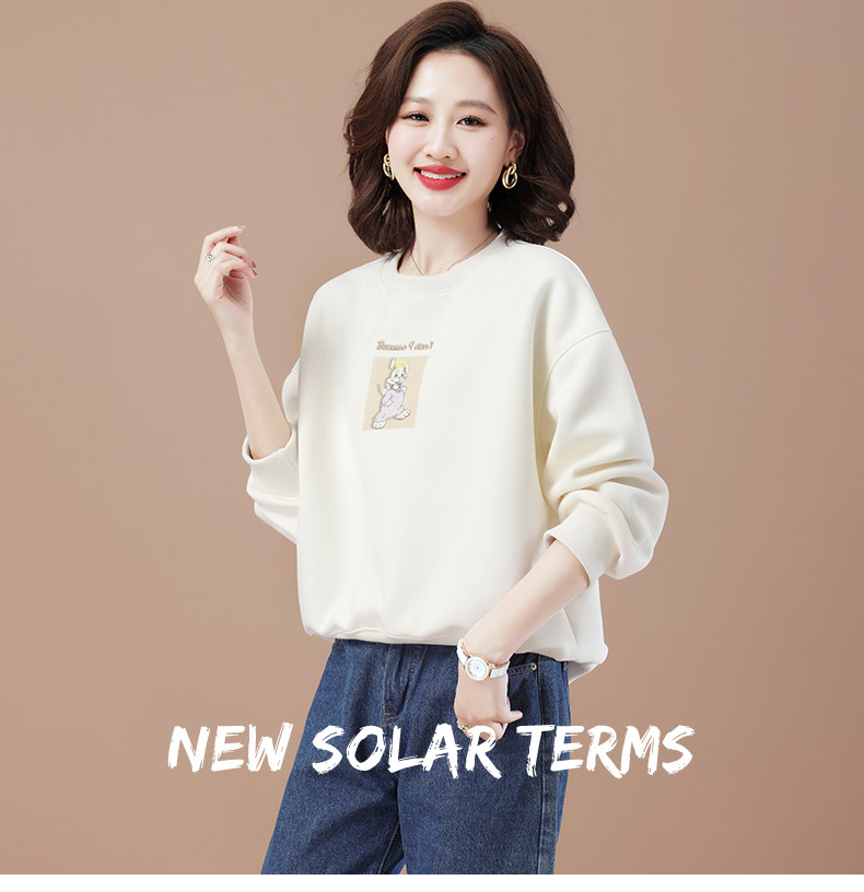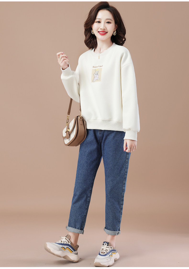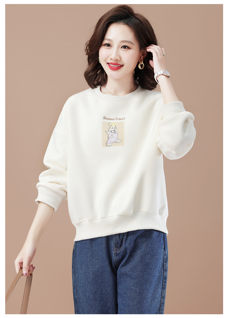 round-Neck Non-Hoodie White Autumn Clothing Thin Casual Sweatshirt